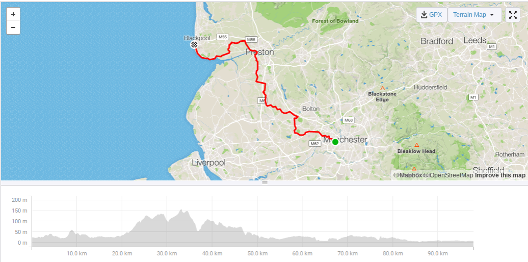 I’m back from my annual Blackpool to Manchester, and back the next day weekend. After six nights camping in Wales, I drove up on the Saturday morning to our meeting point with Pete and Dave in Kearsley.