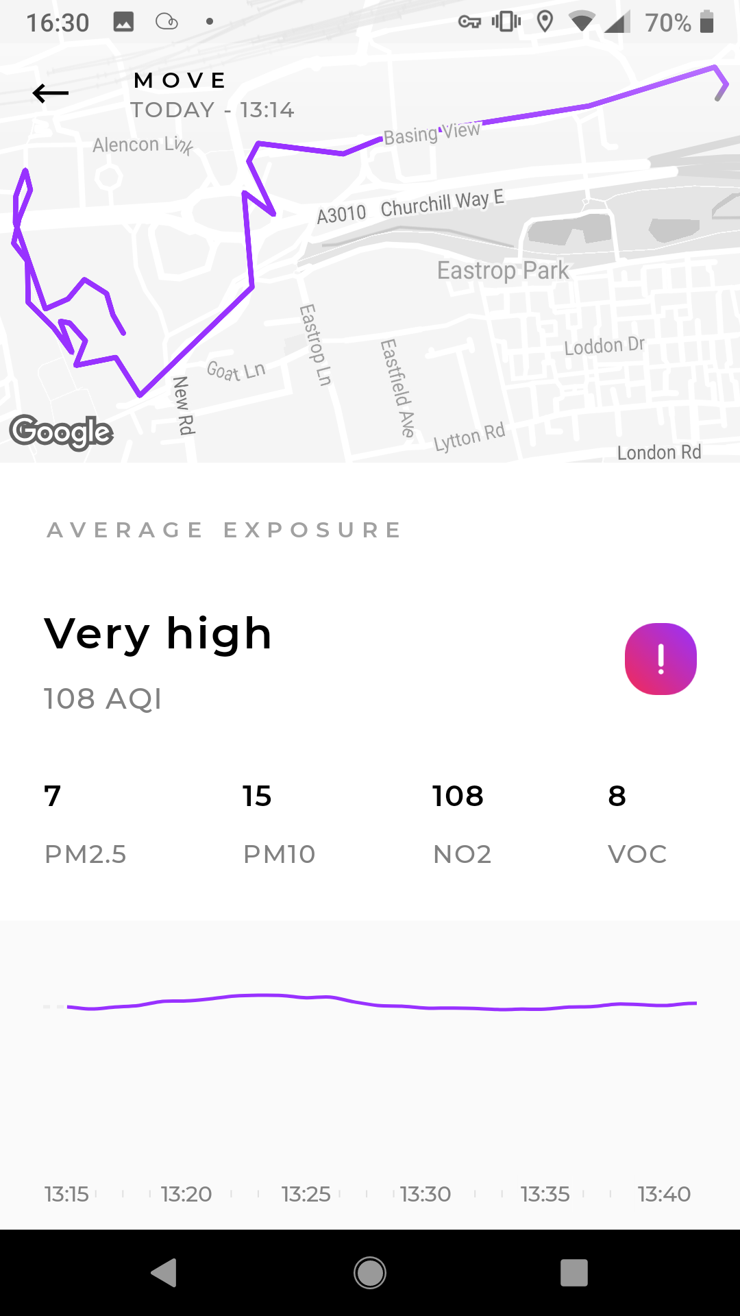 As is my habit, I took my Flow with me to test the air of Basingstoke. When I’m away, I don’t get enough chances to give it a proper charge, so it’s nice to have it back. The council know it, but I took the chance to tweet them with my readings anyway.