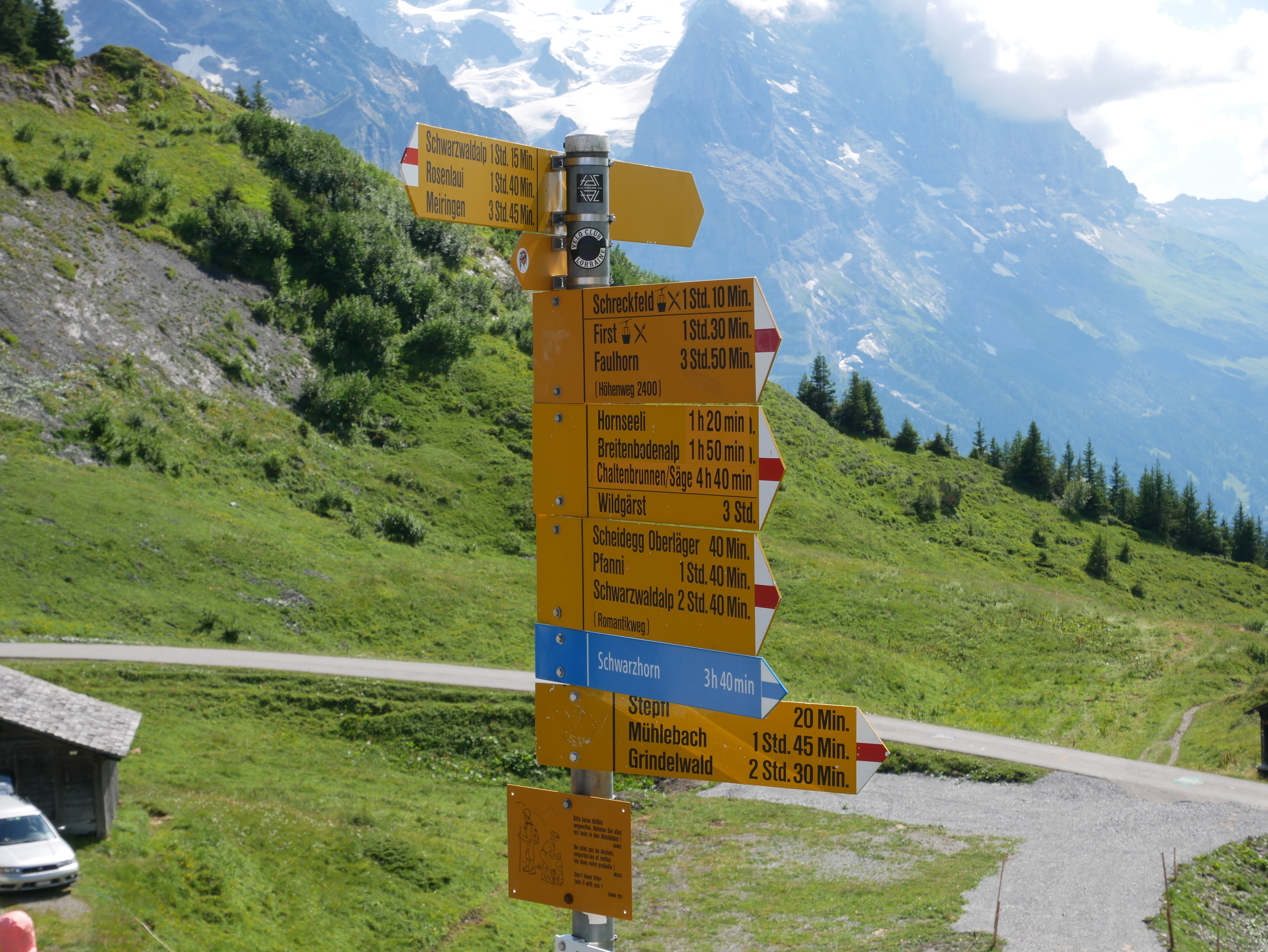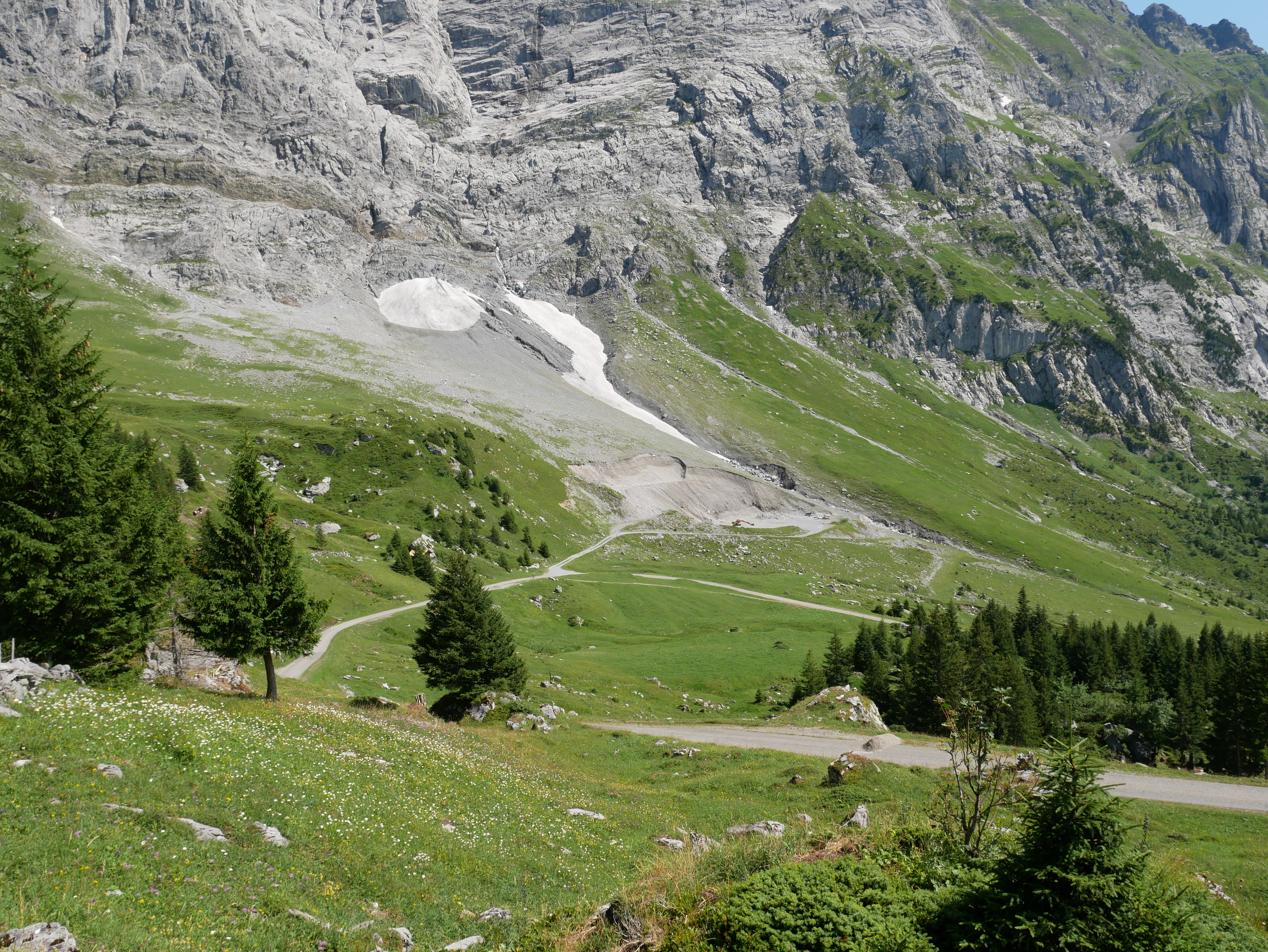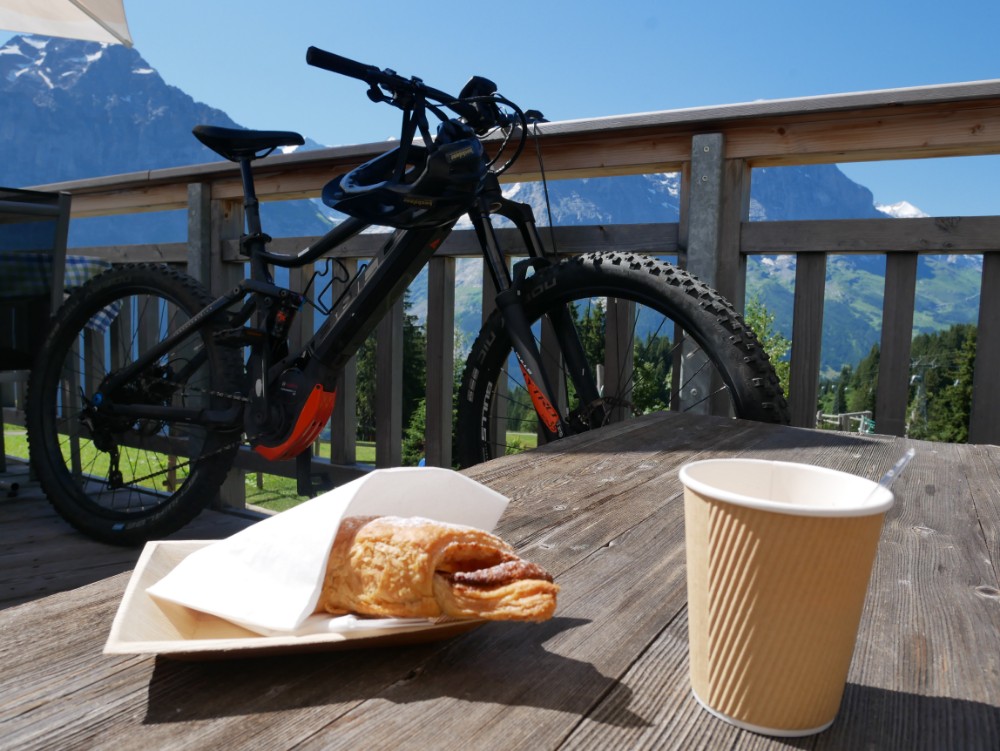 It was great being out and having a look around. More planning was needed and I should have taken the chances to recharge. When I did take it to the shop for new tyres I decided to hammer up the hill and use all my three bars. The shop had put some charge in and I had three bars. Heading up the same way I’d ridden in the moring I started to ride Route 1 and taking on some steep loose stuff and failing. So, to the single lane roads that the Grindelwald bus follows. Up and up. The busses make a loud noise to let you know they are coming in your direction with some chance of stopping in time, if they really needed to. Then again, maybe not. One close shave was enough.