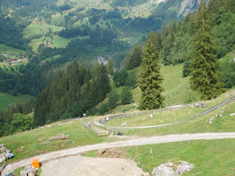 I think I’ve been on holiday for about at least six weeks.First I went to Aveimore, then to Pembrokeshire, then on 18th July to Paris. Tonight will be my 15th night in a tent, give or take a day or two. And finding my campsite for tonight was pretty easy with Grindelwald wifi. It’s in a nice spot down by the river. There’s a walk up and down a hill, but it’s very close to town. I booked in for 22.40CH and went back in to town for a big bag of crisps before my final walk up the other hill to the hostel to collect my bags. There was a small tumble walking down the loose 20% track, but all is fine, I think.So what to do? The Pfingstegg cable car is five munutes walk away. Let’s do that! And as I’m in no rush to do anything I’m having a large lager with a great view.Next stop, the Pfingstegg toboggan run. I’m enjoying being a tourist! I could hike around here, but I’ve been lugging a big rucksack and a small rucksack around. I’ve had enough of a workout aleady.I’m back in the bar\restaurant with the great view. I had one ride on the tobbogan and one is enough. I’m a danger t myself and the general public. The problem is this – you don’t need to use the breaks. It wasn’t long before I caught up to the lady wearing a hijab in front. I slowed down, knowing that there was mother and small child behind. So, I left a gap and let the breaks off again. This was almost a disaster. I slammed the breaks on and half fell out without crashing in to her. I have a friction burn on my knee and decided paying 27CH for sausage and fries was a safer option than riding again. I really want to ride again!