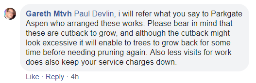 I’ve just seen a man with a hedge cutter with an extended handle crudely cut branches from the trees out the back. I don’t have a problem with trimming trees and bushes back, but there was no plan to this. And from what I can see, there was no reason to do it. My view was of a housing estate finally bedding in and maturing. What I have now is a damaged tree with sharp pointed snapped off branches.