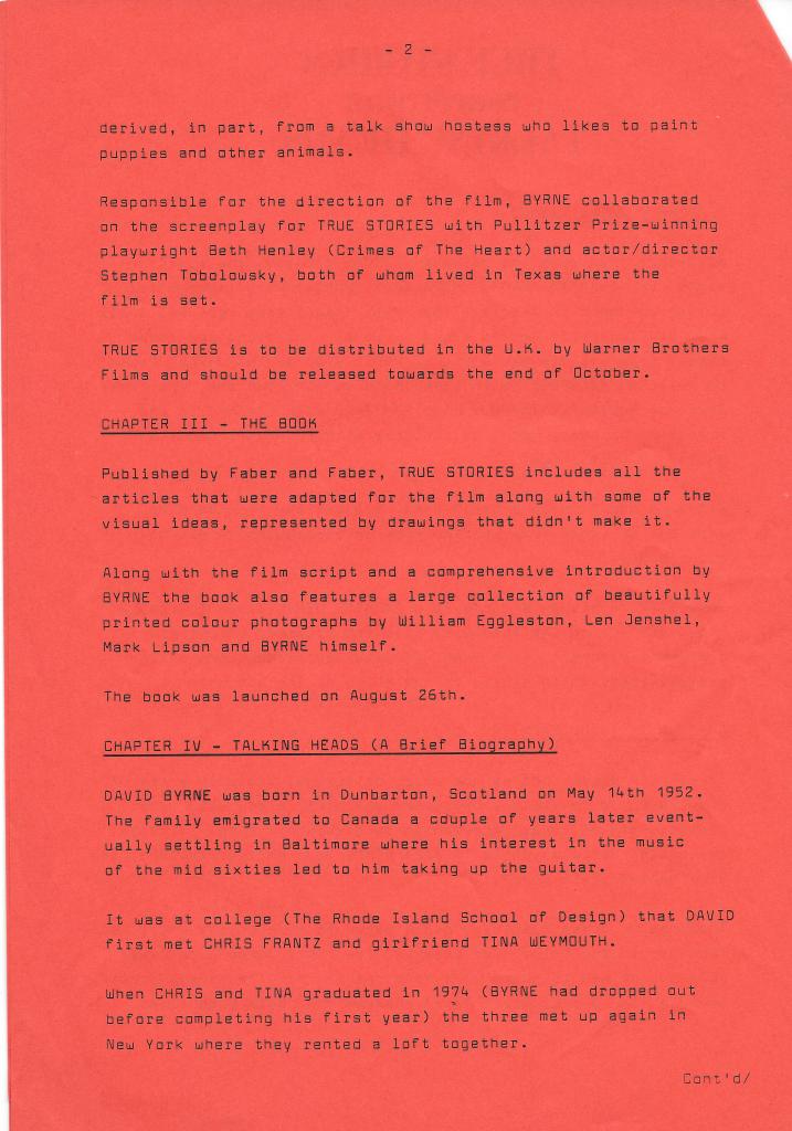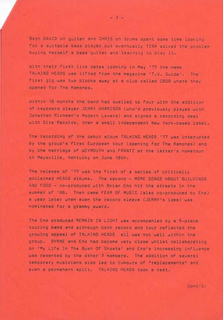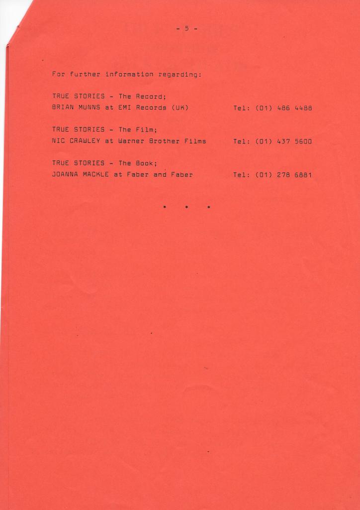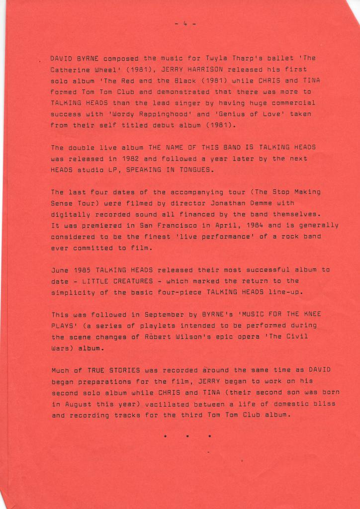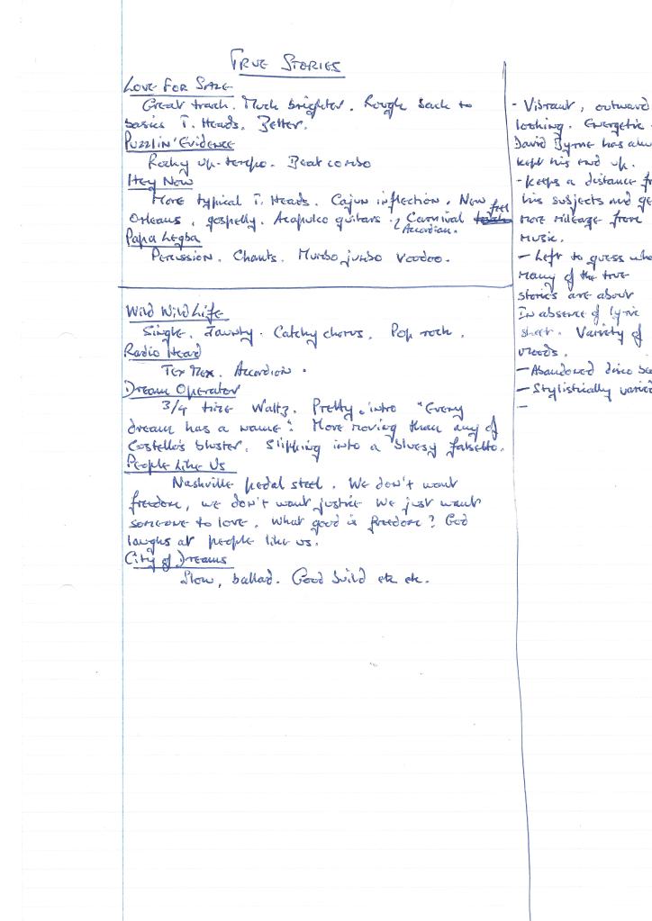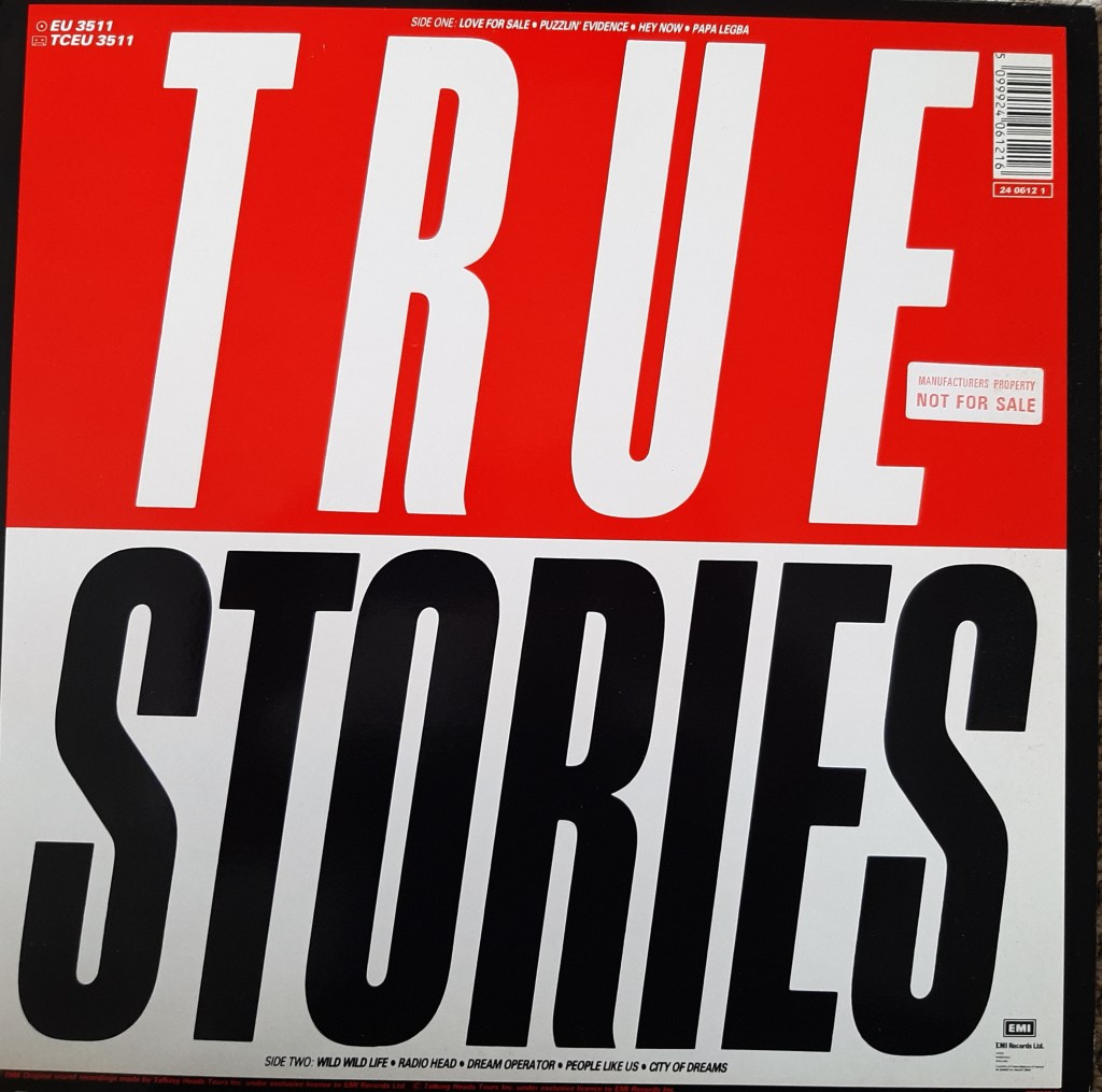 Many things seemed to become more important than shopping for good second hand stuff, but when I was on a roll I was doing well. The best thing I did was collect five Talking Heads LPs for three quid each. All of them are perfect and there’s not even a hint of surface noise. And every now and then you get a little bit more than your imagined, which adds to the story. It’s not a great story, but True Stories – “Not for sale. Manufacurers copy” – has a little extra in the sleve.