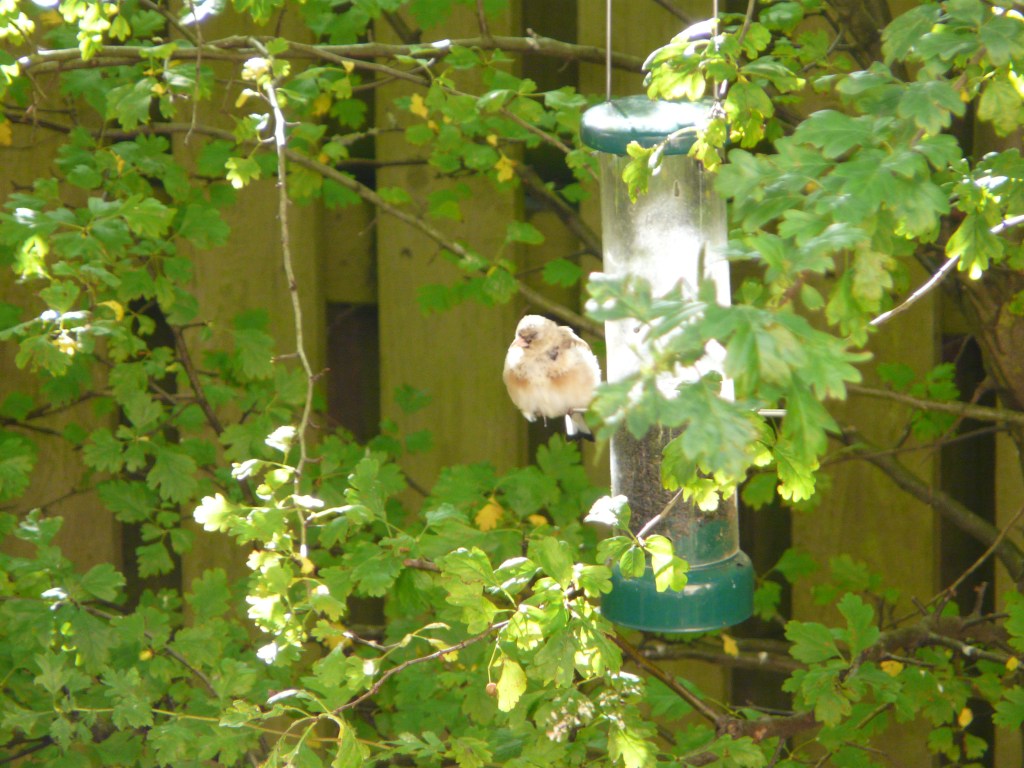 Some young fledgling was having a kip perching in my nyjer feeder this afternoon. I thought it was a funny looking goldfinch, but it’s not. If you have any idea, let me know. With a bit of luck the RSPB will reply with an ID sometime tomorrow.
