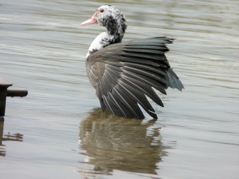 I needed to Google this duck. It turns out that it’s native to South America and this one either escaped from captivity or descended from captive ducks just like the mandarin duck. When I was looking them up on YouTube I found out that they have a good bit of meat on them and watched on being slaughtered, which is what happens when you’re a bird with good meat on you. Either way he/she looks happy on the times I’ve been down the river.