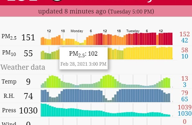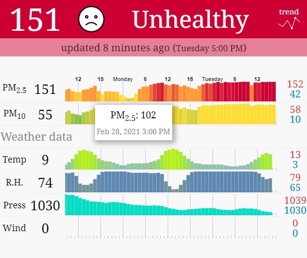 I have long breaks when things aren’t going well. That long spell of things not being great is still on-going, but I suppose that I must be feeling more positive. The alternative is that things are so bad that I need to write about them, without mentioning what the bad things are. What brings me here is to go on about something I can’t control, but something I can at least measure and make decisions about. That thing, as always is air quality.